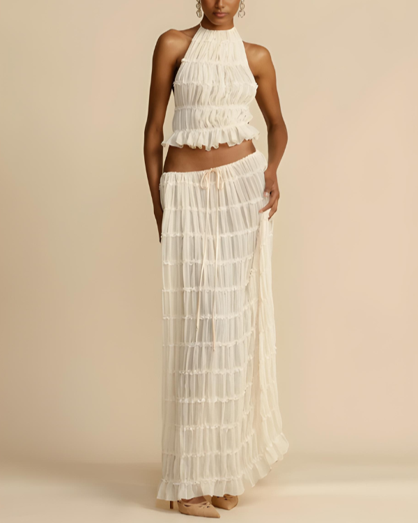 Verleihen Sie Ihrer Garderobe sommerliche Eleganz mit dem Doris Zweiteiligen Damen-Set mit Haltertop und Maxirock – Ihre stilvolle Wahl für warme Tage. Jetzt entdecken – dieses Modell ist sehr gefragt!