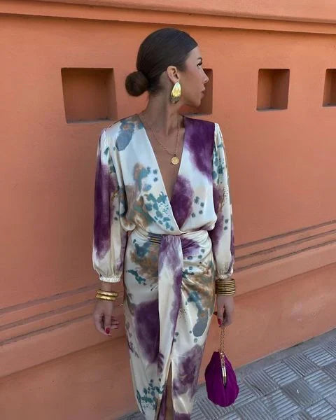 Das Larissa Kleid in Lila mit V-Ausschnitt ist die perfekte Wahl für diejenigen, die nach Eleganz und Stil suchen. Hergestellt aus hochwertigen Stoffen, bietet dieses Kleid eine bequeme Passform, die deine Figur gekonnt in Szene setzt. Perfekt für formelle Anlässe oder einen besonderen Abend, mit einem zeitlosen Design, das klassische Raffinesse mit einem modernen Touch verbindet. Achtung, das Muster kann von Kleid zu Kleid variieren.